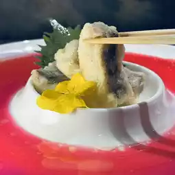 The tempura kiss fish has a crispy exterior and incredibly tender flesh. Paired with the restaurant's carefully prepared vegetable sauce, a drizzle of lemon juice creates a unique visual effect, creating a unique color change. The sweet and sour sauce pairs beautifully with the sand barracuda.