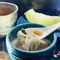 The milky white broth is made from over 30 fish heads and bones, simmered for five to six hours. It's first filled with gelatin, and the addition of vegetables and mushrooms absorbs the broth's umami flavor, making it both delicious and refreshing.