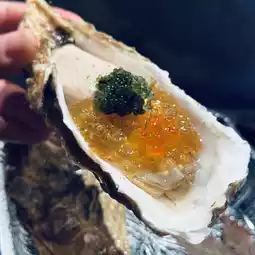 This variety of oyster is incredibly plump and creamy. Paired with yuzu jelly, Hokkaido salmon roe, and sea grapes, it further enhances the oyster's sweetness.