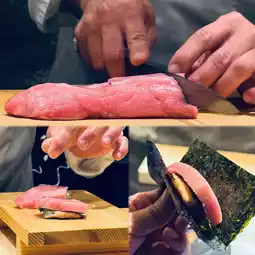 Naotian is a rare cut of tuna near the tuna's inner rim. Its meat is exceptionally tender and rich. After being seared, the fish's oils are fully released. Paired with crispy seaweed, perilla leaves, medium tuna belly, and sautéed sea salt, the dish is bursting with the freshness of the fish.