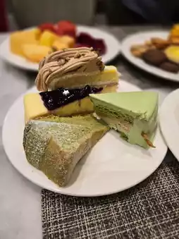 The quality of the cakes was surprisingly good. The blueberry cheesecake and chestnut cake are must-tries. For those with a sweet tooth, you can also try the matcha cake, pandan cake, and even the Napoleon cake.