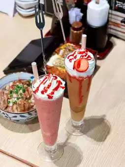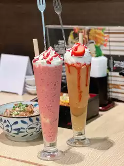 The smoothie is finely blended without any ice chunks, made with fresh strawberries and mangoes. It has a fragrant fruit flavor without being overly sweet, complemented by smooth fresh milk and strawberry syrup.