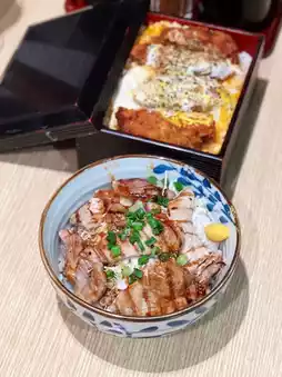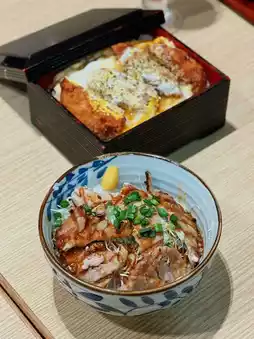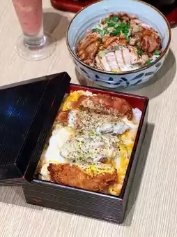 Tokachi pork has fine muscle fibers, making the meat tender, delicate, and elastic with a natural sweetness. The rice absorbs the excess pork fat and is seasoned with salty soy sauce, balanced by shredded lettuce.