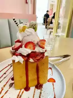 The most popular item is the honey toast in the photo, which is quite filling as you can see!