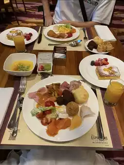 This time, I stayed at Explorers Lodge for the first time, and at the breakfast buffet there you can take photos with Disney characters! I don't know which characters you'll meet every day, but on the day I went, Donald greeted me! I was so happy to be able to take a photo with Donald first thing in the morning🫶🫶I gave my smartphone to the cast member and he took lots of photos for me, and he also took pin-up photos and group photos, so I was able to take more photos than I would have in Japan!! !