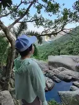 🌺 Little Hawaii Trail is a small section of the Wilson Trail, connecting Tseung Kwan O and Tseng Lan Shue in Sai Kung. We started from Tseng Lan Shue, and the entire route is a gentle downhill walk, taking about an hour at a leisurely pace. Midway, you'll reach a must-visit spot with a small waterfall, which is very refreshing. The water flow is not too strong, and dogs can happily play in the water. You can also enjoy a distant view of Tseung Kwan O. Continuing forward, you'll arrive at Po Lam in Tseung Kwan O, where there are buses and minibuses connecting to various parts of Hong Kong.