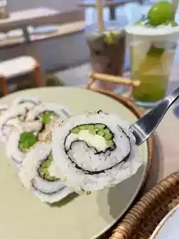 The color of the rice rolls was beautiful, fresh, crab meat and asparagus.