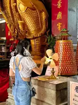 Che Kung Temple, also known as the Temple of the Windmill, is a revered site among the Chinese community. It was built 300 years ago to commemorate the great warrior 'Che Kung'. The windmill at Che Kung Temple is famous for its ability to ward off bad luck. To worship the windmill, one should circle it three times clockwise above the incense burner and then sprinkle incense ash on the windmill.