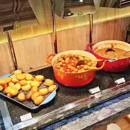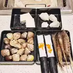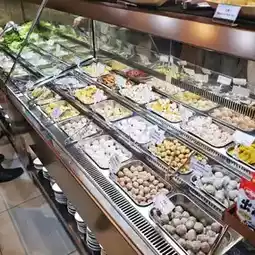 The buffet area 💪 also has many different styles of hot pot ingredients, curry fishballs, siu mai, bowls of wings, etc. 🇭🇰 Hong Kong street snacks and different types of 🍹 drinks