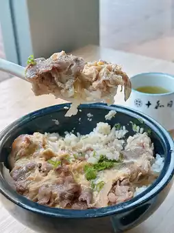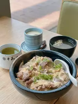 Large pieces of tender beef tenderloin beef flavor rich 🥩 wrapped in smooth and tender egg batter 🥚 then add onion threads 🧅 The overall taste is sweet and very moist very moist rice with pearl rice in a large bowl after eating very satisfied 🤤 The package also comes with miso soup and tea bowl steaming very good value for money