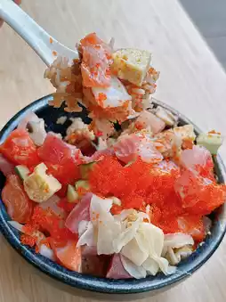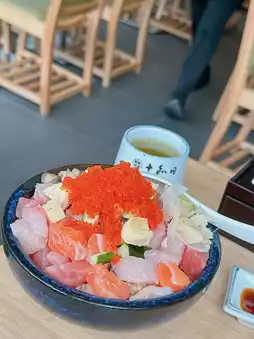 The sashimi of the assorted sashimi bowl is very rich and full of ingredients. You can't see the sushi rice at all. The sashimi has tuna, salmon, goldfish, conch, crab seeds, sweet eggs and cucumbers