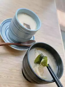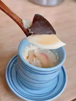 Set with miso soup and tea bowl steam 🥣 Miso soup has kelp taste will not be too salty 🍳 steamed egg with mushroom crab stick Naruto rolls smooth enough