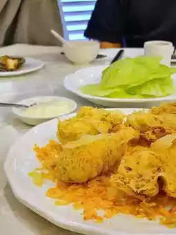 The Salt and Pepper Baked Fresh Abalone from Dalian for $320/3 pieces is as thick as a palm, tender, and flavorful without overpowering the abalone's natural taste. Even the neighboring diners recommended this dish.