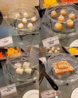 Finally, I have to mention their buffet bar, which featured chestnut tarts, coffee puffs, coconut cake, mung bean sweet soup and fragrant coconut sago dessert, other light meals including California rolls and a variety of fresh salads.