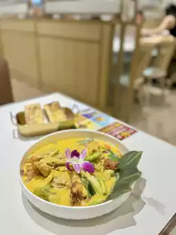 The main course of the meal for two was originally Padang Grilled Three Yellow Chicken (half), but we added $48 to switch to the Ancient Egg Yolk Curry Soft Shell Crab (2), this decision was really right! The soft shell crab is fried golden and crispy, the crab meat is fresh and sweet, the curry sauce is rich and delicious, and served with the fragrant white rice, it is simply the perfect combination!