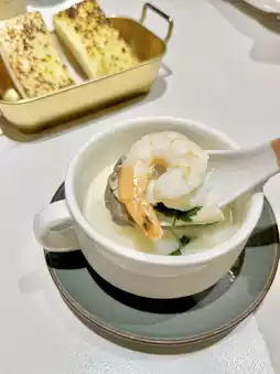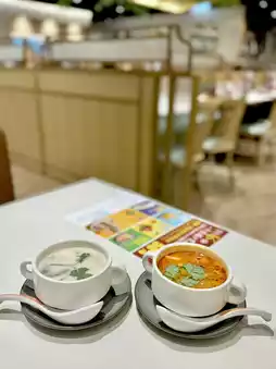 For the soup, we each chose one, the tom yum seafood soup is sour and spicy, appetizing, seafood ingredients; coconut lemongrass cream mussel soup is milky rich and fresh, both soups have their own merits, are excellent.
