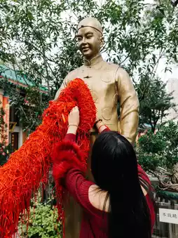 Here it is, the content that everyone has been waiting for 555555 A few years ago, Dream had the opportunity to fly to Hong Kong. At that time, I was single. I didn't have anyone. I didn't want anyone. 🤣 When the guide told me to go to the Red String Temple, this place is very sacred. Anyone who wants to ask for a partner must come here. Many couples have had their wishes fulfilled. And yes, today I am one of those who have their wishes fulfilled. ❤️🇭🇰 The Moon God or Yuk Lou, some people call it the Red String God. In his hand, he will hold a book with the names of everyone in the human world. And you can see who each person's soulmate is and where they are... Therefore, anyone who has not found their soulmate can come and ask the Moon God to help bring our soul mates to meet each other. #How to worship the Red String God The temple will have a red string that you can pick up. And there will be a picture of how to wrap the red string on your hand. We can follow the picture. (While praying, the red string at Wong Tai Sin Temple must not slip out of your hand.) Look at the Moon God (the god in the middle) and tell him your name, surname, and date of birth. That you come to ask for a soul mate (Please provide clear details. You can write it down. 🤣) Then, bow 3 times after worshiping and do the following. If the requester is a woman, walk to the bride statue and say "The 3 specifications of a soul mate that we want." Bow 3 times and walk to the groom statue and say "May you find your soul mate soon." Then, tie a red string on the groom's side and rub his feet 3 times. The ceremony is complete. If the requester is a man, walk to the groom statue. "The 3 specifications of a soul mate that we want." Bow 3 times and walk to the bride statue and say "May you find your soul mate soon." Then, tie a red string on the bride's side and rub her feet 3 times. The ceremony is complete. (Thank you for the information from Uncle Dang and Auntie Kai's page here.) 📍How to get there: Take the green line and get off at "Wong Tai Sin" Station, Exit B3, next to the Temple Mall. #Don't miss it, spiritual people #RedThreadTemple #WongTaiSinTempleHongKong #WongTaiSinTemple