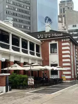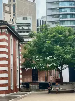 This is Tai Kwun Square, one of the best photo spots in Hong Kong. The atmosphere is so cozy, the wood is pretty, it's great for taking pictures, and it's a must-visit place during your trip to Hong Kong. It's especially nice because you can get there easily by taking the Mid Escalator.