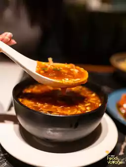 The hot and sour soup is quite filling, with chewy shrimp meat and full of freshness. The taste is a little more sour than spicy, and you can add some pepper to enhance the flavor.