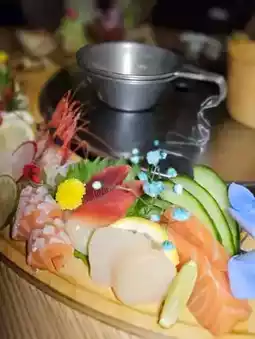 The fried food is golden and crispy, the portion is plentiful, the sashimi is thick and fresh😋
