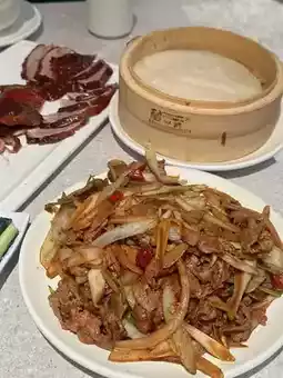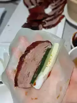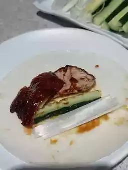 The portion of half a Peking duck is quite large. The duck meat is relatively large and lean👍🏻With cucumber and scallion dipped in sweet sauce, it is wrapped in a thin ramekin and tastes good. It would be better if the ramekin can keep warm