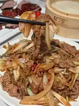 A large dish with enough ingredients🐏The lamb is fat and tender, adding scallions and cumin to season it is delicious. The taste is not smelly but it will be a little greasy at the end of the meal