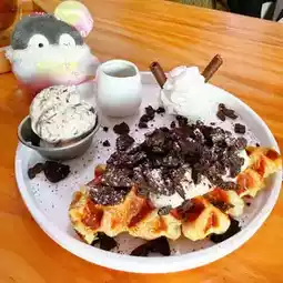 I tried the highly recommended Mochi Croissant Waffle 😚 I chose the Oreo flavor 🤤 The croissant waffle is made to order, and it was still warm and fragrant when served 🤭 It was crispy and buttery, with a savory aroma 😋 Paired with the cream, Oreo crumbs, and the cold ice cream on the side, the combination of hot and cold flavors was unforgettable 😚