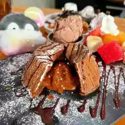 I also ordered a Chocolate Lava Cake 😉 It came with a variety of colorful fruits and a smooth, delicate scoop of ice cream 👍 The presentation was rich and beautiful 😍 The outer layer of the cake was fragrant and sweet, with a crispy texture and a soft interior. The chocolate filling was rich and outstanding, a must-try for chocolate lovers ✅