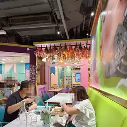 I've been to Homeland in Mong Kok before ❤️ I've always been obsessed with their handwriting and drawing plate desserts 🥰 This time with 🐧🐧 Jun came to the branch in Tsuen Wan to reminisce 😋 The environment is still colorful, a lot of flower decorations feel fantastic 😍 take pictures and take pictures super suitable 😎