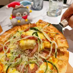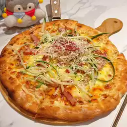 🐧🐧 Jun chose a secret Peking duck pizza😚 The pizza is super big, two to three people can share🤤 The thin pie is baked crispy and delicious, covered with sweet and fragrant Peking duck sauce😋 Served with soft and delicate duck meat, refreshing onions, and the essential string cheese, the taste is excellent 👍