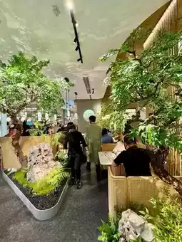The decor is stunning, with a strong Chinese garden vibe, filled with lush green plants that give a natural feel. It's clear that a lot of thought went into the restaurant's design.
