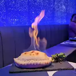 Starò restaurant offers a romantic starry sky ambience and attracts many couples and guests celebrating anniversaries, and it is found that many couples will send flowers to celebrate at this restaurant. The restaurant's decoration is dominated by dark environments and starry sky elements, creating a feeling of being in the universe. It is really suitable for taking photos and checking in, and the staff also have lighting tools to help take photos.