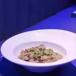 This risotto is made with a lot of mushrooms and has a rich aroma of black truffles. It is recommended for mushroom lovers.