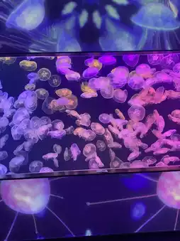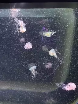 In addition to many different jellyfish in a grid tank, there is also a space with several columns, and there are many jellyfish inside, which is really beautiful😍