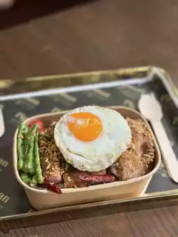 The decor is quite distinctive, themed around missions. The menu design and ordering process are quite special. The space is small with only 5-6 tables, mainly focusing on takeout.