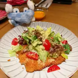 Milan thin fried chicken steak is also excellent😚 Large piece of crispy chicken steak cut into pieces, hidden in a refreshing salad dish, very rich combination🥰 Crispy and delicious chicken steak, folded with refreshing salad dishes to eat together, perfect choice😆