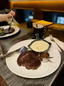 American steakhouse located in Wan Chai 🍽, romantic and atmospheric ✨ The restaurant focuses on nothing else ~ is the must-eat steak package, selected American 1855 black Angus ribeye steak, reaching U.S. Prime level, come of course must try! ️ Also the small ax knife for each meal is really cute 😍, the appetite is full of ceremony.