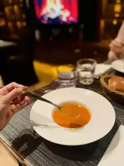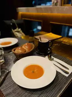There are 3 STARTERS: Soup Of The Day 🔸 is a daily soup is carrot soup, with 🔸 special thyme garlic butter meal bread, baked bread is very soft, eat with Thyme Garlic Butter fragrance. The salad is Fresh Caesar Salad🔸 Caesar Salad.