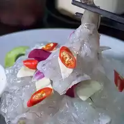 Tonkatsu soup is the most famous soup in Thailand, also meaning sour and spicy, tom yum refers to sour and spicy, kung refers to shrimp, here done very well, moderate sour and spicy, full of Thai spice flavor, shrimp super large crispy bouncy