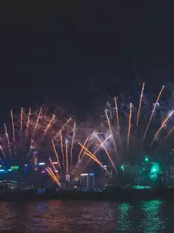 Bright fireworks as the background, beautiful harbor view