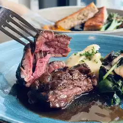 ▪️Dry-Aged Wagyu Bavette, Mashed Potato, Sauteed Spinach (+48) Mature Wagyu Bavette, Mashed Potato, Sauteed Spinach (+48) Mature Wagyu beef flavor, tender meat taste incomparable, with barbecue sauce is very tasty, side dishes with baked potatoes and butter fried spinach, with steak very delicious