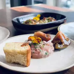 ▪️ Barca Hamachi, Heirloom tomatoes, Brioche (+48) The oily fish grains are very fresh, served with sweet raw tomatoes and cream roll bread, a refreshing starter