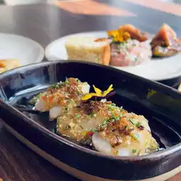 The scallops were served with ceviche juice, avocado mousse and lemongrass vinaigrette