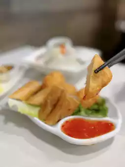 The fried shrimp cake is crispy on the outside and soft on the inside. The shrimp is rich and tender. The spring rolls are crispy and delicious. It's very addictive