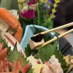 🍣 Sashimi includes sweet shrimp, red shrimp, salmon, scallops, etc. 😍 Plus, it comes with smooth French red wine blueberry foie gras 👏🏻