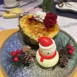 There are small fresh pineapples, sweet and sour, mixed with cream to eat, soft and smooth, very fresh, very surprising!