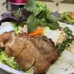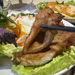 Binhai is traditional Vietnamese rice flour made into a cake, then topped with onions and fried garlic, then served with other ingredients, this time I chose the restaurant signature, fried super crispy and fluffy lemongrass pork chop, traditional eating with lettuce wrapped all the ingredients, then dipped in Vietnamese fish sauce sour sauce