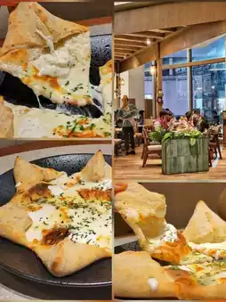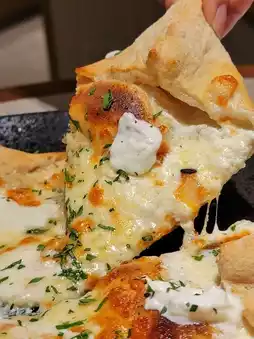 This quadruple cheese pizza is very special with a star-shaped pie design, using four cheeses: Burrata, Gorgonzola, Mozzarella and Mascarpone. The pizza base is very smooth and soft, and the garlic sauce is even more fragrant.