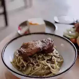 Slow-cooked vanilla chicken chop avocado spaghetti 🍝