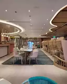 The restaurant is spacious, the whole decoration is full of holiday feel, the atmosphere is relaxed and relaxed. In terms of food, I especially like the salmon seed grapefruit salad with Thai spicy sauce. The salmon seed is crispy, plus the grapefruit is very fresh; and the fried shrimp tempura pink burger is also amazing. Very layered 😆 Dessert I like strawberry mousse champagne coconut jelly cup, eat some coconut flavor out, immediately like back in Thailand, in addition, the muffins are also worth a try, with his pineapple jam very tasty ~ drinks ordered Lotus tea and butterfly tea, more chocolate mini gift box, very satisfied🥴